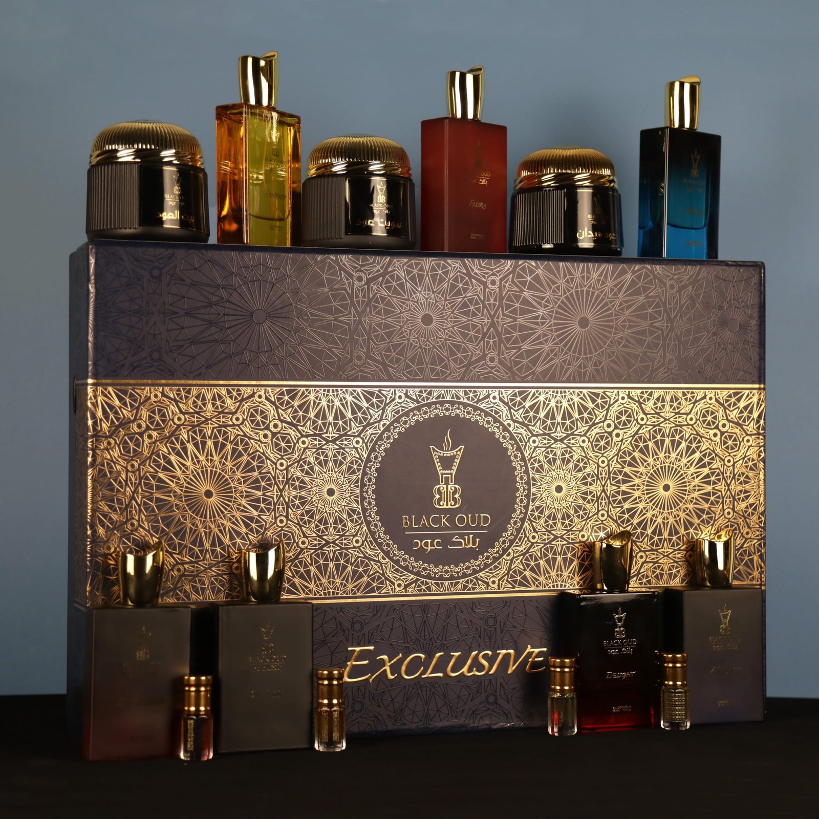 Discover the art of luxury fragrance with our Exclusive Gift Set Box. This carefully crafted collection brings together the finest scents, oud blends, and musks, offering a refined sensory experience for those who value elegance and sophistication. Whether you’re treating yourself or looking for the perfect gift, the Exclusive Box is a true treasure for fragrance lovers.